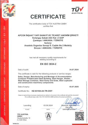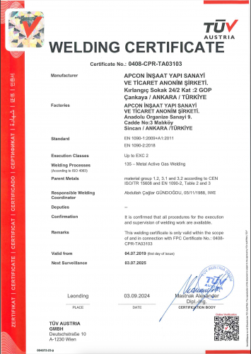 WELDING CERTIFICATE WELDING CERTIFICATE 2 ISO 45001 ISO 14001 ISO 9001 EN ISO 3834 EN 1090 ZERO WASTE CERTIFICATE